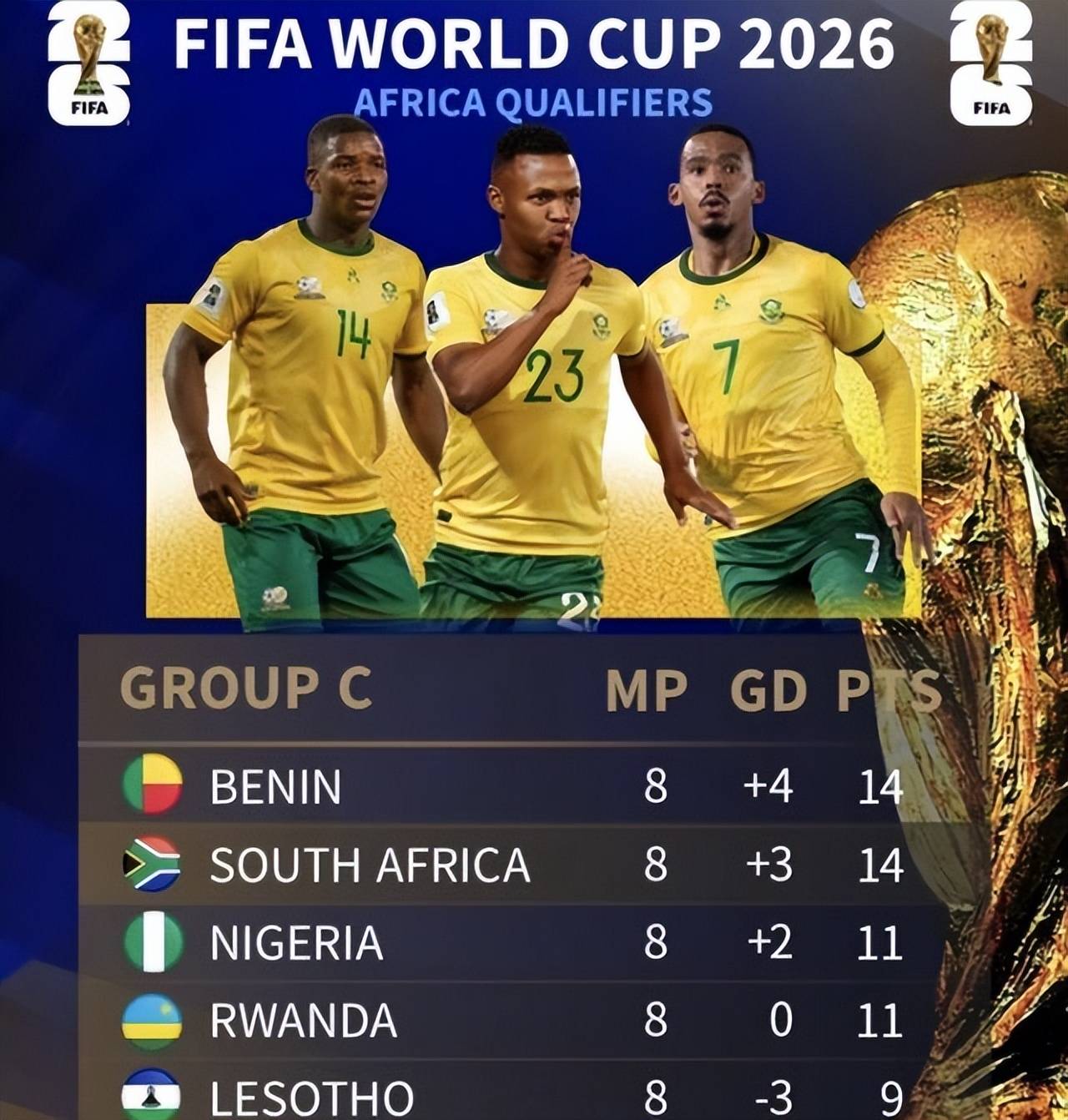 这一判罚立刻让C组积分格局大变。原本南非17分独占鳌头,贝宁14分排在第二,尼日利亚和卢旺达各11分,莱索托6分,津巴布韦4分。如今南非和贝宁同为14分,但贝宁净胜球4个,南非只有3个,于是贝宁上升到第一。莱索托因捡到3分升到9分,排名也有所提升。小组还剩最后两轮,只有第一名能直通世界杯,第二名可能打附加赛。南非若想翻盘,必须在对津巴布韦和卢旺达的比赛中全取6分,同时盼望贝宁在对阵卢旺达和尼日利亚时失分,竞争格外激烈。