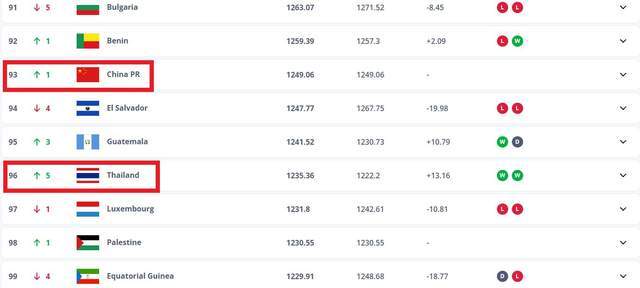 第一个,泰国足球的积分提升非常快。9月和10月的比赛日,泰国男足参加了4场国际友谊赛,取得了3胜1负的出色战绩,使得他们的积分暴涨,从102位一路攀升至目前的96位。而中国男足则由于选帅问题,未能参加任何比赛,导致积分停滞不前,排名仅有93位,虽然上升了1位,但与泰国的差距却愈加微乎其微。
