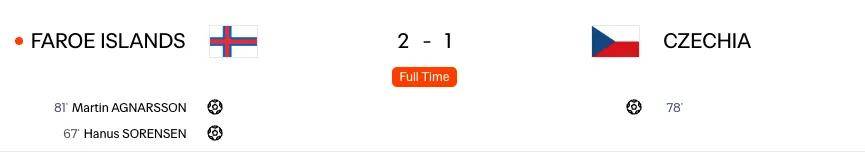 虽然当时的法罗群岛队未能改写与捷克队交手难取一胜的历史记录,但经此一役,这一支法罗群岛队让同组对手和外界都转变了对他们实力的看法。