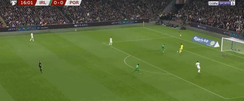 比赛开始仅2分钟,维蒂尼亚从左路送出传中,C罗试图用脚后跟射门,但力度不够,爱尔兰门将凯莱赫轻松将球扑住。10分钟时,贝尔纳多·席尔瓦在右路送出精准直传,坎塞洛回敲,C罗跟进爆射,可惜球直接飞上看台,错失了再次破门的机会。