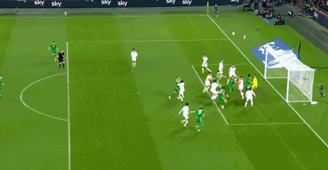 爱尔兰并没有就此停下进攻,第45分钟,奥谢长传发动反击,帕罗特在左路内切后低射,迪奥戈·科斯塔判断失误,皮球飞入左下角,爱尔兰以2-0扩大领先。