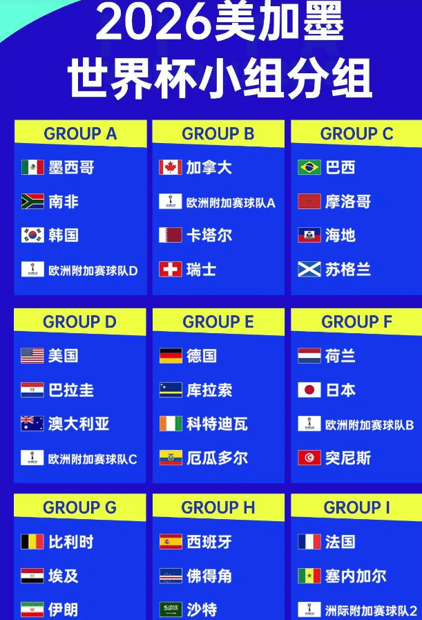 亚洲区的最大赢家非韩国队莫属。这支太极虎完美避开西班牙、法国等夺冠热门,与东道主墨西哥、非洲弱旅南非以及一支欧洲附加赛球队同组。无论是丹麦与北马其顿的胜者,还是捷克与爱尔兰的赢家,以孙兴慜为核心的韩国队都有十足把握拿下。“避开死亡组,小组第二稳了!”韩国球迷在社交平台集体狂欢,甚至提前畅想淘汰赛的对手。