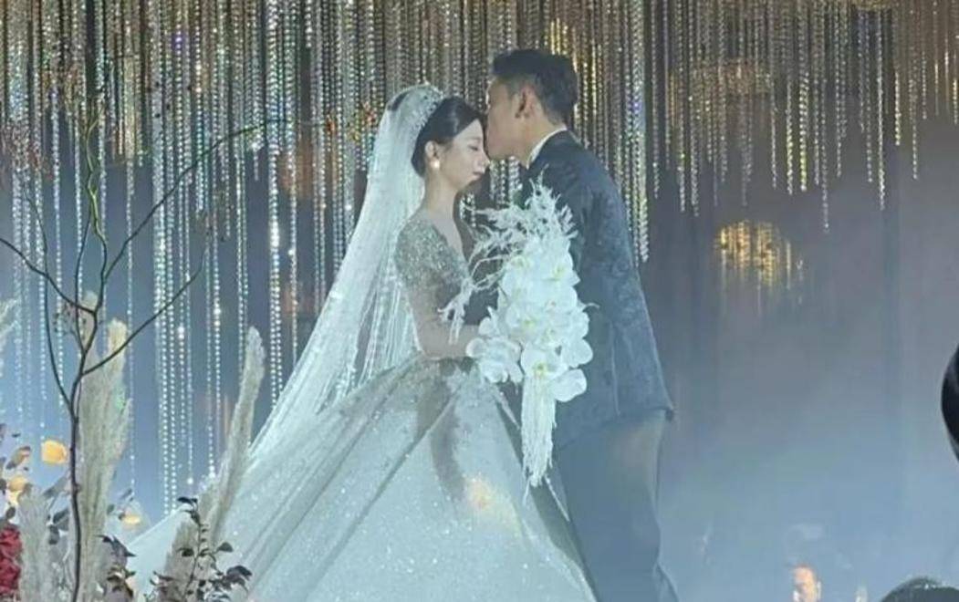 从媒体曝光的照片来看,朱辰杰穿了一身黑色西装,新娘则是一身白色婚纱,手里拿着花,看起来特别温柔。有一张照片是朱辰杰亲吻新娘额头的画面,真的很浪漫。背景里还有不少鲜花和装饰,整个婚礼布置得既豪华又温馨。