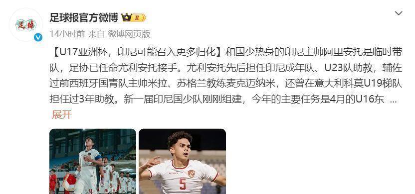 这两名球员分别是门将拉加萨和后卫马修·贝克。 据《足球报》报道,他们参加5月份的U17亚洲杯“几无悬念”。 门将拉加萨生长在荷兰,去年仅在U17世界杯对阵洪都拉斯队的比赛中首发过。 后卫马修·贝克出身于澳大利亚墨尔本城俱乐部的青训体系,于2024年归化印尼,本赛季他已进入墨尔本城一线队,并在澳大利亚杯完成了首秀。